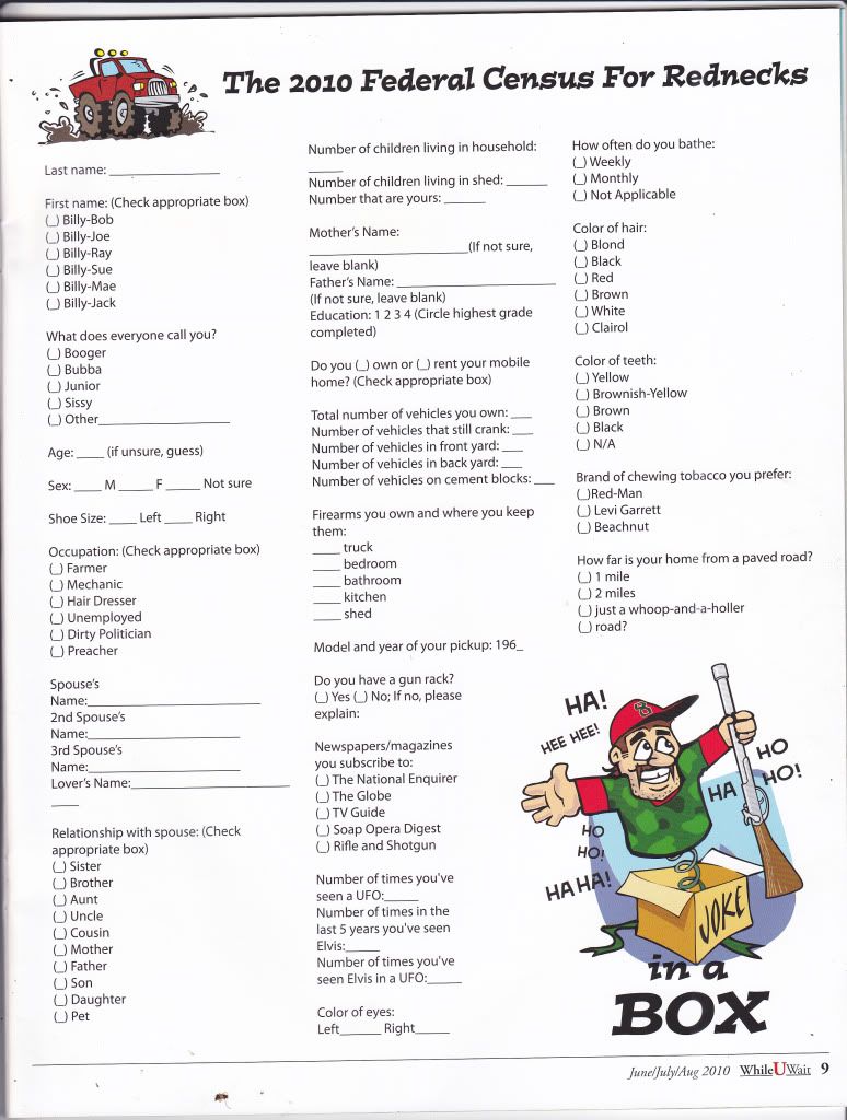 The 2010 Federal Census For Rednecks