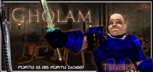 NICE job, Gilly. You should put the name over the sword though. Be selective about your sparkles. Your sig looks extremely clean and well laid out, I'd put subtle ones on the BOW thingy and then one on the sword, but behind the O. Dodge up his chest armor a little so you can see his face, nothing heavy maybe?