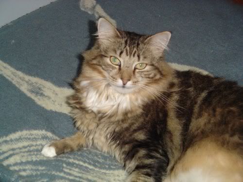 Asriel's mommy, Llyan... she's a resocialized feral cat. She's really a sweetie. :)