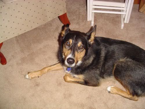 And my dog Sid... he's a shepherd/husky/wolf hybrid. Adopted from the SPCA 7 years ago. He's 8 now. World's fastest frisbee dog. :) That's a really silly picture of him, but I don't have any others scanned for some reason.