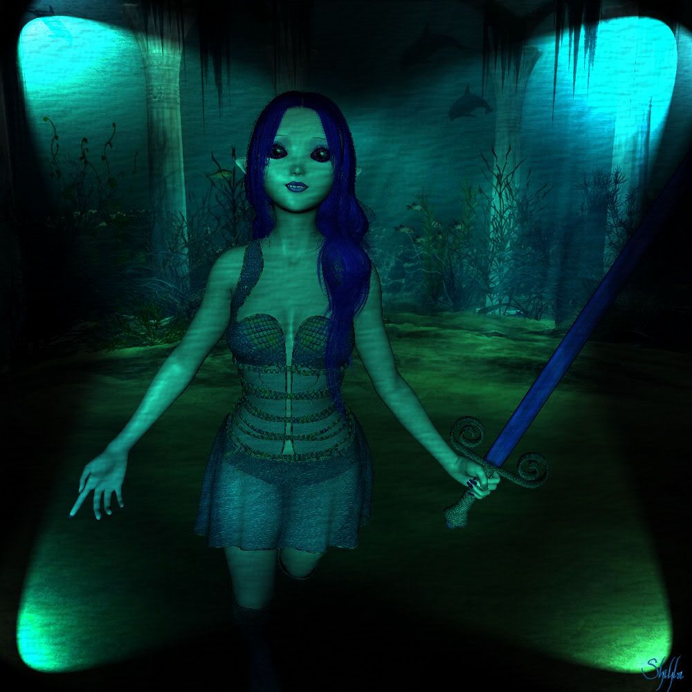 In addition to what's been said, my c/c would be that her hair should be floating a little if she's underwater, right? Great job on the light waves and her hand posing. She doesn't have that blank poser stare which is nice too. I know I got some of those. Keep em coming!