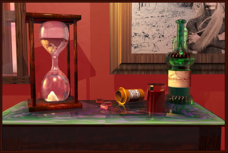 The hour glass was made in Art of Illusion and imported into Bryce because Art of Illusion is crappy at rendering.
