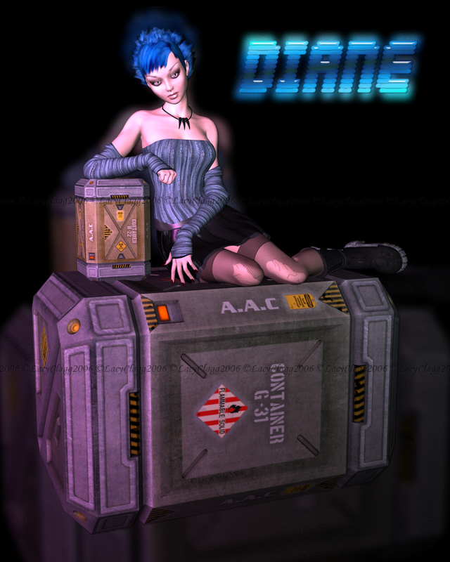 Diane -she wanted a goth/scifi theme, blue hair, torn stockings, badass feel