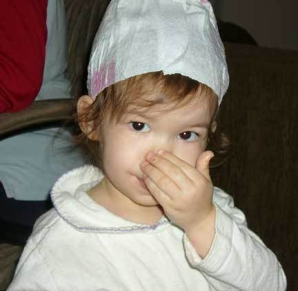His older sister who is two... and yes, she's wearing a pullup on her head as a "crown"