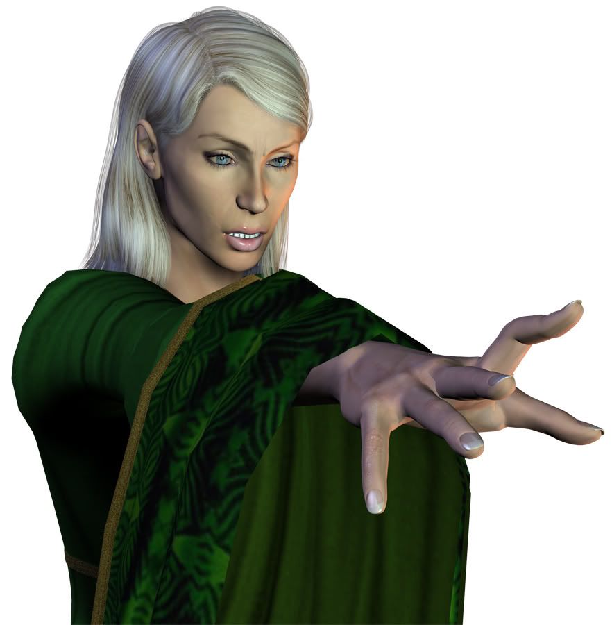I am not quite sure exactly what I am going to do with her as far as setting/background stuff so far...but I think I am probabyl going to have some type of fire spell effect coming from her hand....maybe a fireball with flames licking along her fingers as well if I can manage to pull it off...since most of the direct damage mage spells in game seem to be fire based...that idea kinda of jumped at me when I got done and really looked at her...