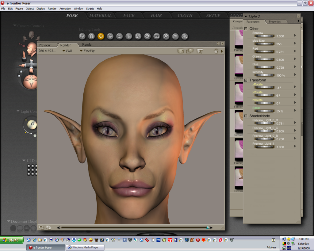 ok not really sure what this is ...exactly...she STARTED out with every intention of being an Elf...and well um..just as I was about to declare her face morph done..she said to me...and I quote her..."I need a cat mouth...fix it now woman!"...so I did, and changed her pupils to slitted ones as well, for which she thanked me profusely and declared me "done>....lol