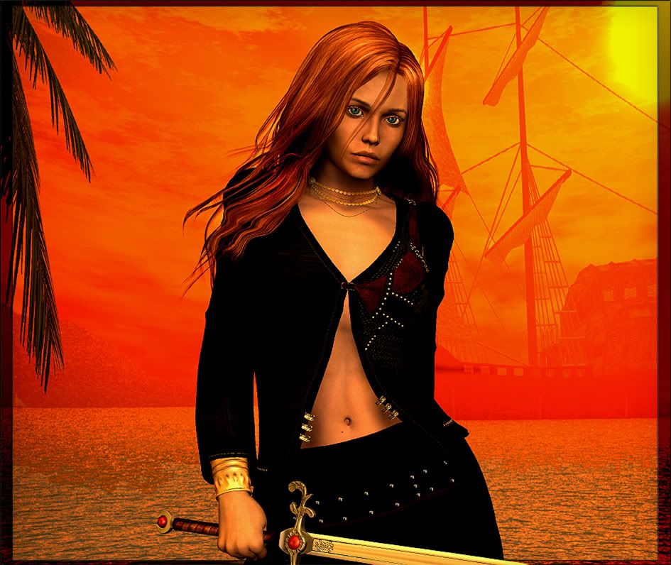 Now that's one beautiful, sassy wench!!! I love the sunset tones too =D